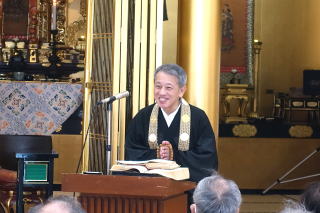 | 講師は鹿児島別院輪番・教区教務所長の吉川孝介先生。 「開かれたお寺を目指して~変わる時代 変わらぬ教え」 の講題でお話していただきました。 |
