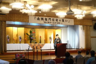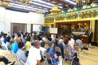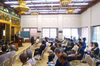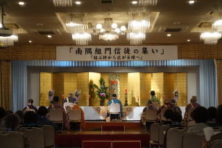 | 南隅組の夏季僧侶研修会がありました。 今回は、4人の先生方によるリレー法話 があり、願生寺をはじめ組内寺院から、 ご門徒の方もお聴聞にこられました。 |