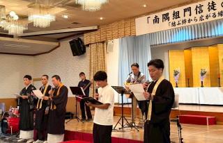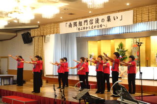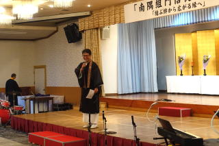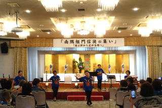 | 令和5年以来、2年ぶりに南隅組門信徒の集いが開催されました。 仏参・法話の後、参加寺院の方による演芸大会があり、大盛況でした。 南隅組全体で300名近くのご参加(願生寺からは30名)がありました。 |