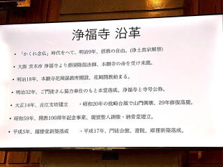 | 浄福寺の沿革について、スライドを用いて教えて いただきましたが、その中には同寺で撮影され た願生寺前住職の若い頃の写真もありました。 |